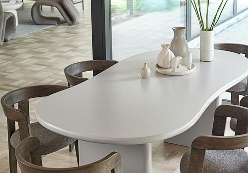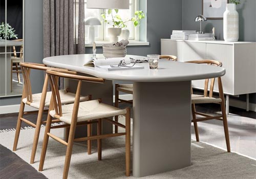 Bàn ăn VORDINGBORG mang phong cách châu Âu thanh lịch với mặt bàn oval phủ sơn bóng màu be dịu nhẹ, tạo điểm nhấn tinh tế cho mọi không gian phòng ăn. Thiết kế mềm mại của đường cong oval không chỉ đẹp mắt mà còn giúp di chuyển xung quanh bàn thuận tiện và an toàn hơn.