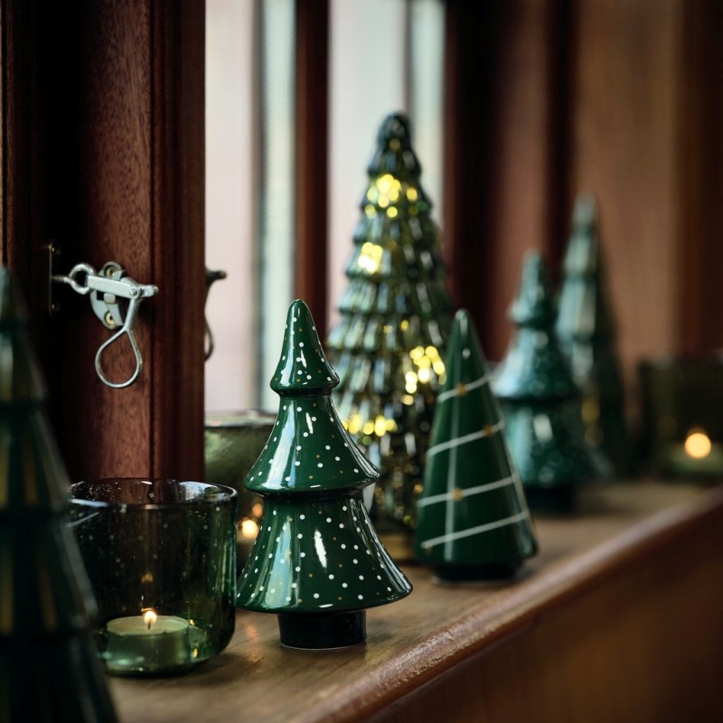 Đây là cách trang trí Noel đơn giản và phù hợp với những nơi có diện tích nhỏ, hoặc một góc nhỏ. Những cây thông Noel bằng chất liệu gốm sứ, sành thường không đòi hỏi quá nhiều chi tiết trang trí.