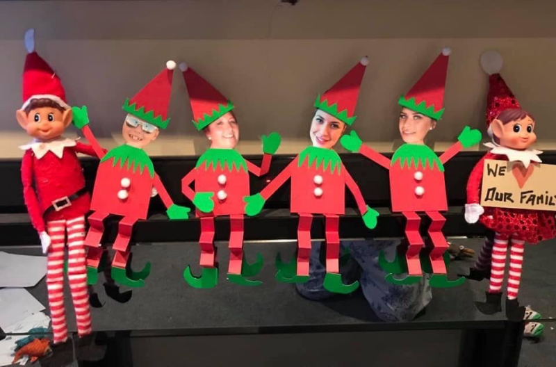 - Bước 2: cắt hình các thành viên trong công ty và dán cố định vào thân hình thần lùn Noel