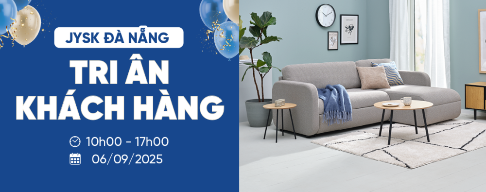 Ngày 6 tháng 9 năm 2025 sẽ là một dấu mốc đặc biệt trong hành trình phát triển của JYSK tại thành phố Đà Nẵng. Cửa hàng JYSK Đà Nẵng chính thức trình làng với diện mạo hoàn toàn mới, mang đến trải nghiệm mua sắm đẳng cấp theo tiêu chuẩn Concept 3.0 - phiên bản cửa hàng mới nhất của thương hiệu nội thất đến từ Đan Mạch.