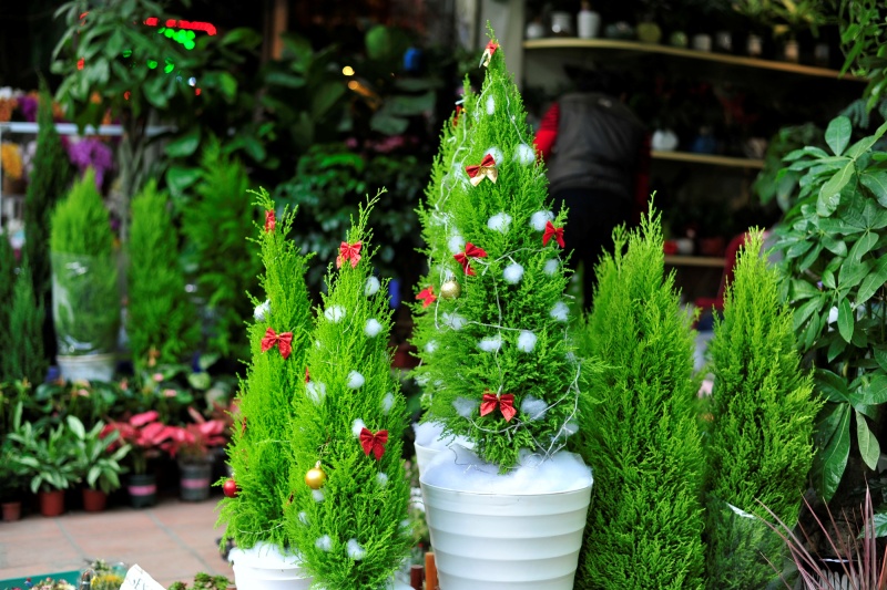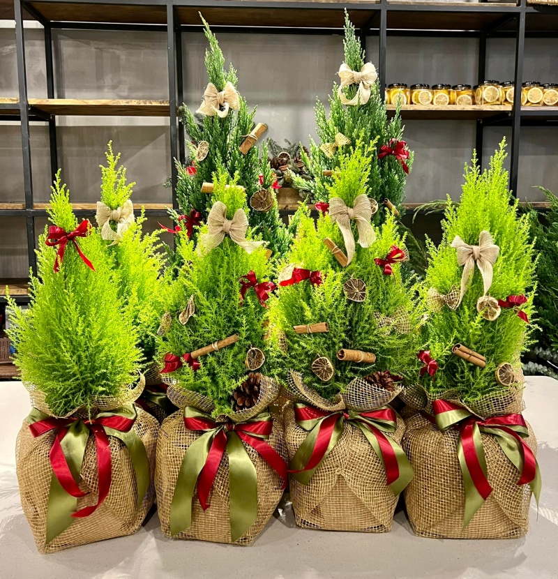 Những cây thông tươi mini (30 - 80 cm) được ghép từ các cành thông Noble Fir nhập khẩu Đan Mạch. Cây thông của được trang trí xinh xắn, tỉ mỉ theo tông màu khách hàng lựa chọn. Giá dao động từ 700.000 đến 2 triệu đồng, bao gồm chậu và đồ trang trí trên cây. Trên một số sàn thương mại điện tử, cây thông tươi mini cao khoảng 45 cm, nhập khẩu từ Hà Lan có giá 700.000 đồng/cây.