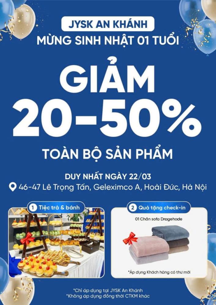 Chương trình ưu đãi đặc biệt: Mừng sinh nhật 1 tuổi JYSK An Khánh