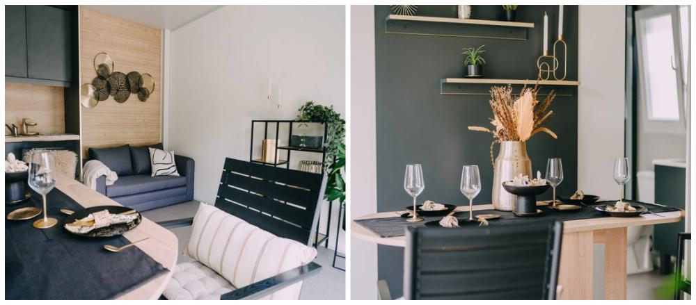 Mẫu phòng bếp phong cách Scandinavian vời bàn ăn tone màu tối tạo điểm nhấn nổi bật