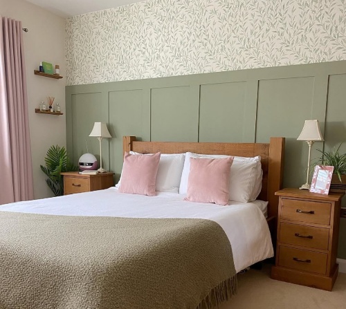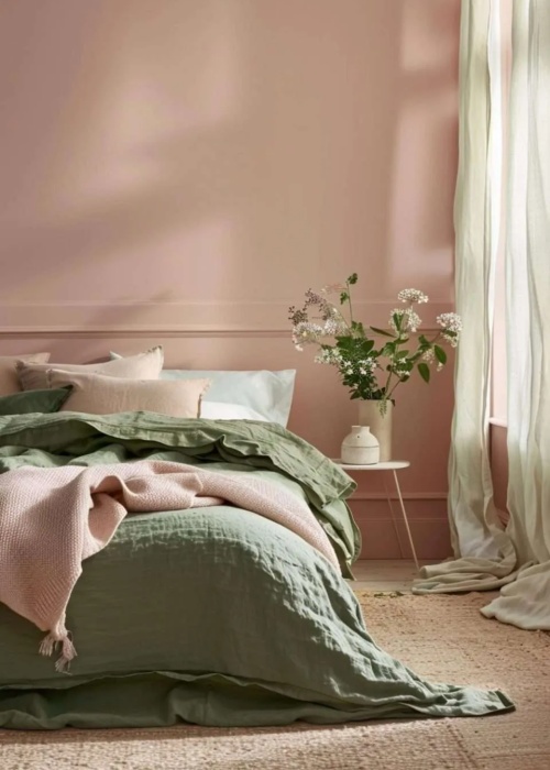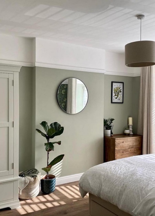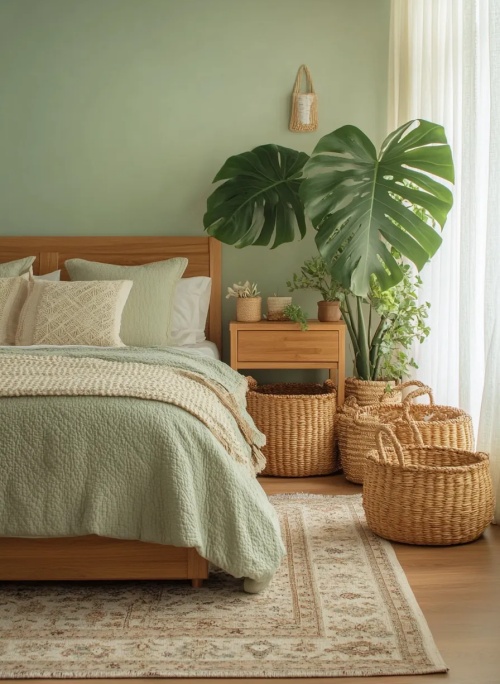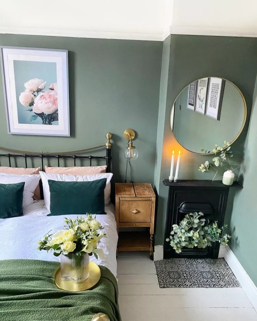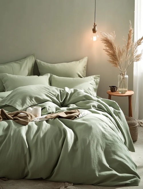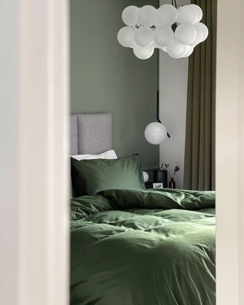 Chúng ta thường có cảm giác yên bình hơn khi tiếp xúc với không gian có nhiều cây xanh. Khi cây xanh đó được dùng để trang trí nội thất thì có vẻ việc đặt bảng màu này vào phòng ngủ của mình là hợp lý. Như vậy, ta có thể cảm nhận được cảm giác sảng khoái, tràn ngập năng lượng vào buổi sáng. Hoặc giảm cảm giác lo âu, cải thiện tình trạng giấc ngủ, giúp ngủ sâu và ngon hơn.
