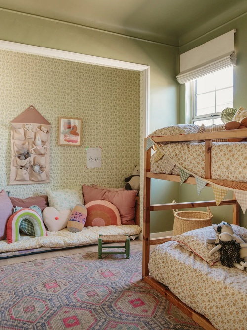 Sử dụng màu xanh rêu làm điểm nhấn kết hợp với các màu sơn khác là bí quyết độc đáo mà bạn có thể tham khảo.