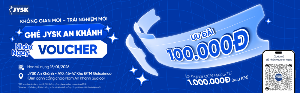 - Voucher áp dụng tại JYSK An Khánh cho đơn hàng từ 1.000.000đ (sau khuyến mãi)