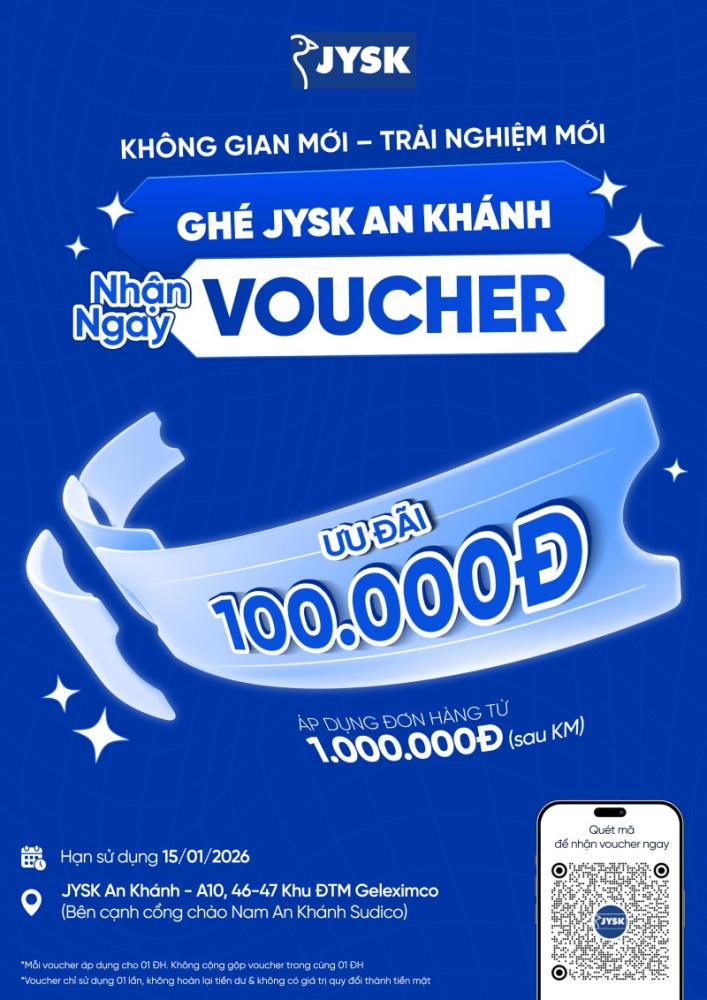 - Cách sử dụng: Quét QR tại JYSK Hà Đông để nhận voucher, áp dụng hóa đơn mua sắm từ 1.000.000đ tại JYSK An Khánh