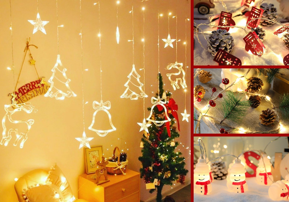 Đèn là phụ kiện trang trí Noel không thể thiếu giúp không gian xung quanh thêm lung linh. Chúng cũng tượng trưng cho các ngôi sao vào đêm Chúa giáng sinh. Bạn có thể lựa chọn đa dạng các loại đèn trang trí, dây đèn led để tạo điểm nhấn cho ngôi nhà của mình.