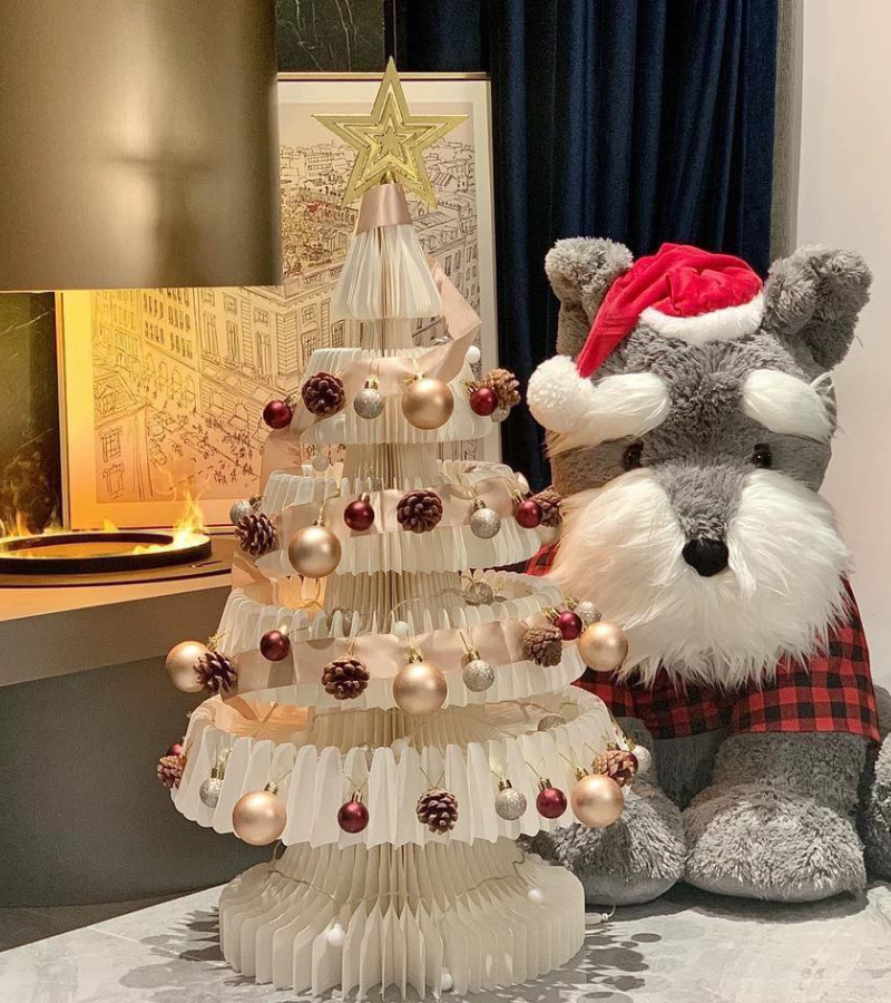 Bạn còn có thể tự làm những tấm thiệp đơn giản với các lời chúc ý nghĩa và treo lên thân cây. Và khi chúng ta cùng ngồi quây quần trong phòng khách, cây thông sẽ làm không gian trở nên ấm cúng và đậm chất Noel.