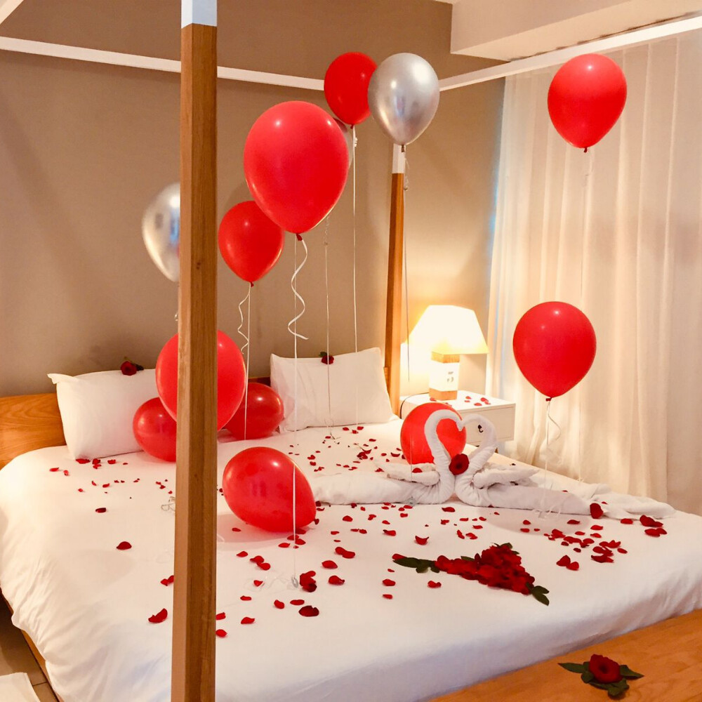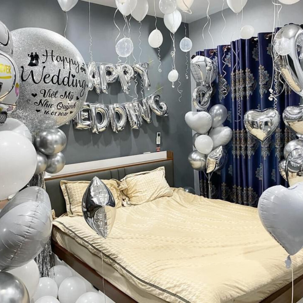 Sử dụng phụ kiện trang trí cho căn phòng luôn là phương pháp hữu hiệu được nhiều người áp dụng. Đối với phòng cưới, chọn phụ kiện đẹp và bóng bay luôn được ưu tiên. Sự bay bổng của những chùm bóng bay nhiều màu sắc là điểm nhấn ấn tượng và tăng thêm bầu không khí vui tươi, lãng mạn cho cô dâu chú rể. Tuy đây là phương pháp đơn giản, ít tốn kém nhưng lại tạo ra hiệu quả và sức hút khó cưỡng.