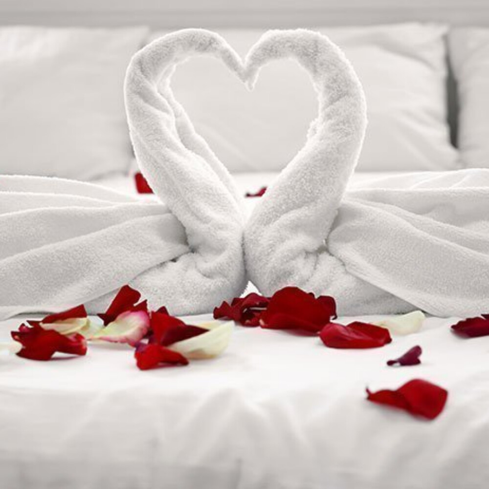 Thiên nga cũng là một trong những hình ảnh đại diện cho các cặp uyên ương và cũng được sử dụng rất rộng rãi trong trang trí phòng tân hôn ở khách sạn. Một đôi thiên nga trên giường tân hôn sẽ vô cùng lãng mạn, đáng yêu. Chỉ với vài thao tác đơn giản, bạn đã có thể tự tay trang trí phòng cưới của mình.