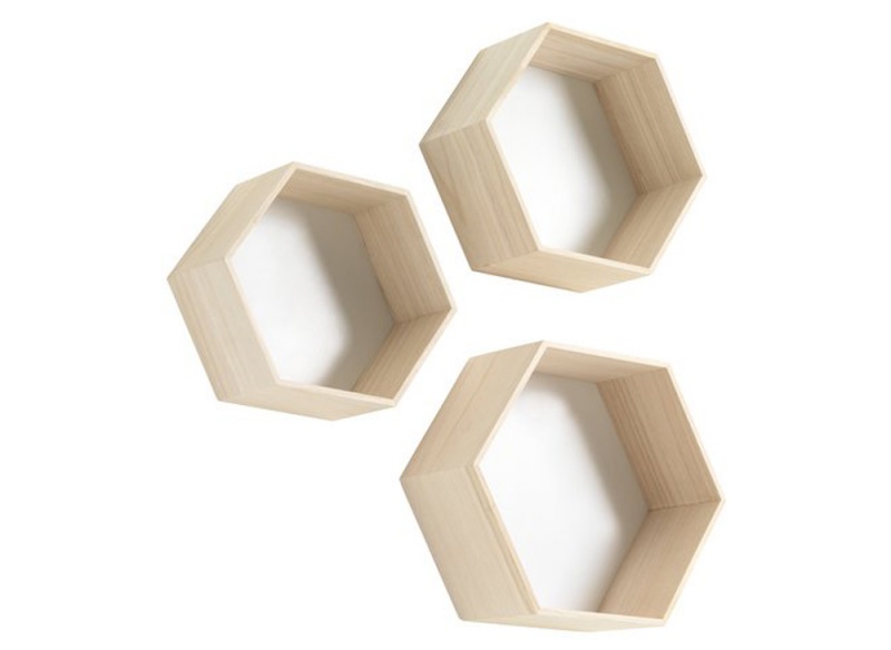 Nếu không gian rộng và bạn muốn tạo điểm nhấn trang trí mới lạ, Bộ 3 chiếc kệ treo tường, gỗ công nghiệp màu tự nhiên/ trắng của JYSK là sự lựa chọn hoàn hảo. Với thiết kế hình lục giác đẹp mắt kích thước 39/30/26cm và 39/35/32cm cùng màu gỗ tự nhiên, bộ 3 kệ treo tường vừa thích hợp để những bình hoa, khung ảnh nhỏ và là phụ kiện trang trí cho không gian phòng khách hiện đại.