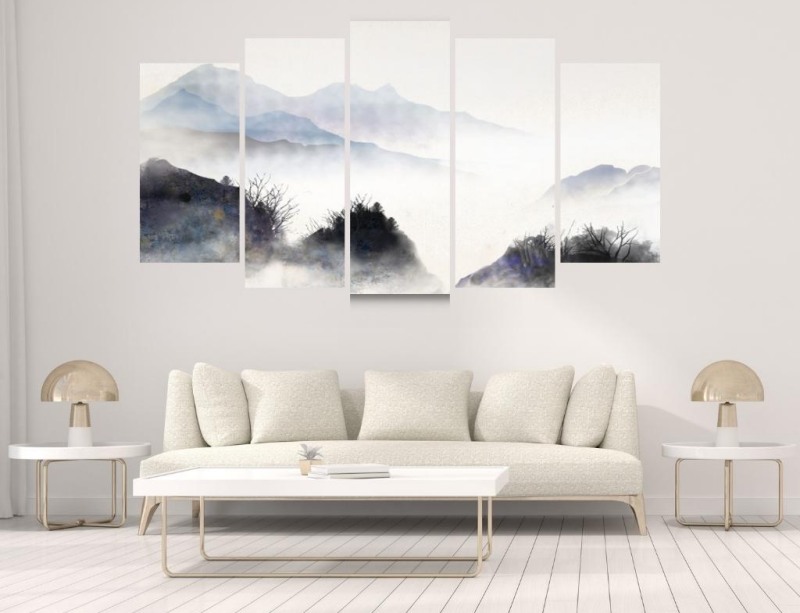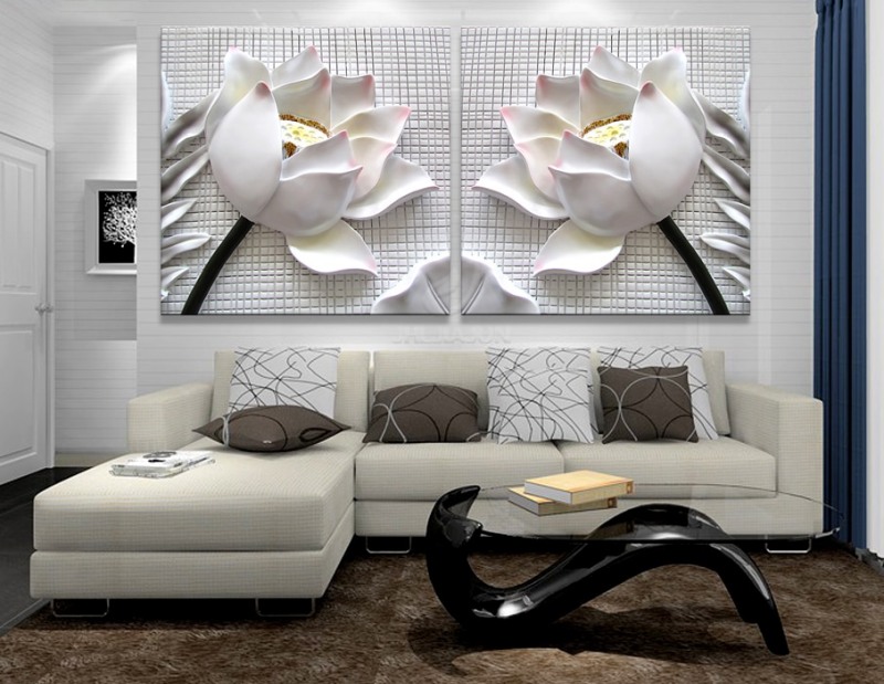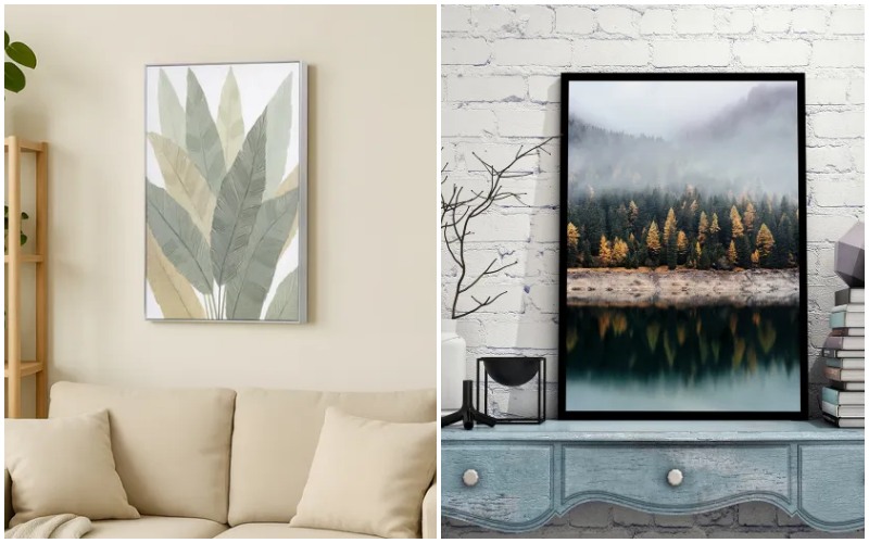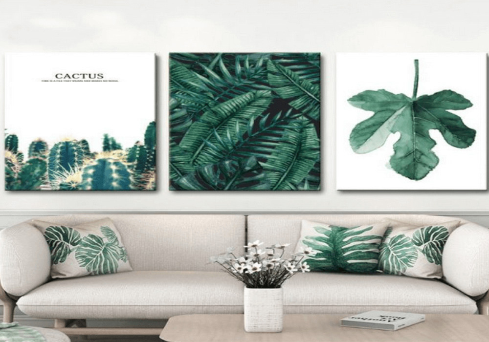 Lựa chọn ít nhất 2 loại tranh treo phòng khách khổ nhỏ để trang trí không gian phòng khách rộng