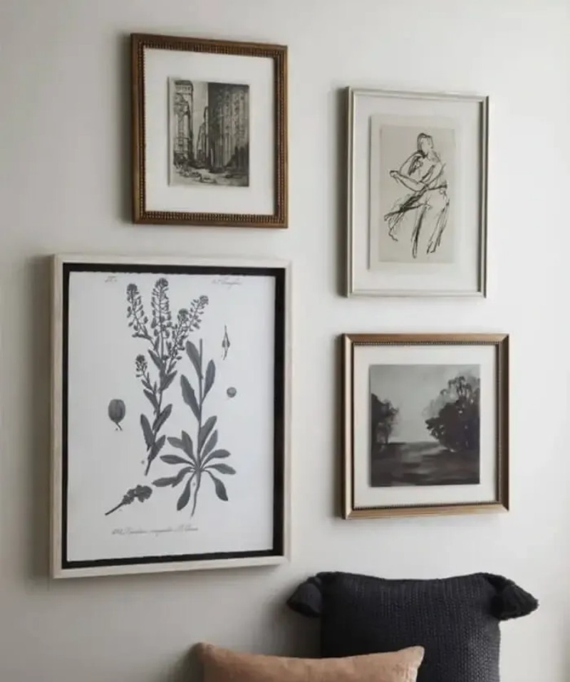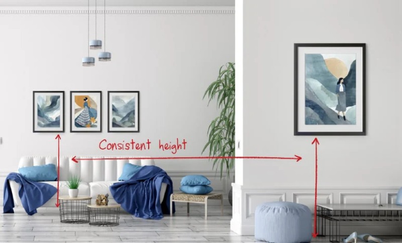 Đối với bộ tranh nghệ thuật gồm nhiều tranh riêng lẻ, có các kích thước khác nhau, khi treo trên tường thường sẽ có hai cách sắp xếp sau: