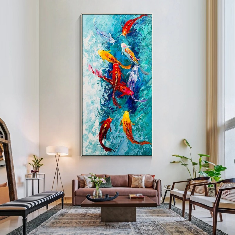 Bên cạnh việc tác động mạnh vào thị giác người nhìn và làm giảm cảm giác bí bách của những căn phòng nhỏ, tranh treo phòng khách khổ dọc còn làm nổi bật không gian tổng thể và làm tăng sức sống cho ngôi nhà.