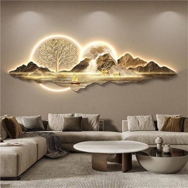Đối với những ngôi nhà có phòng khách rộng thì tranh treo phòng khách chữ nhật ngang khổ lớn là lựa chọn đáng cân nhắc. Không chỉ mang đến cảm giác thoải mái, mát mẻ mà còn khiến không gian trở nên sang trọng hơn.