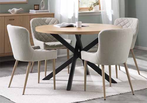• Gam màu vàng cát trung tính dễ dàng phối hợp với nhiều loại bàn ăn gỗ, kính hoặc kim loại.