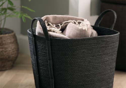 Tông đen trầm mang nét tối giản, giúp giỏ dễ dàng kết hợp với nhiều phong cách nội thất – tạo điểm nhấn nổi bật trong phòng khách, phòng ngủ hay góc làm việc.