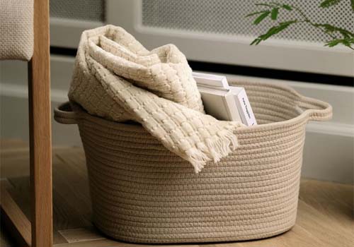 Giỏ thích hợp đđựng chăn mỏng, gối, đồ chơi, tạp chí, phụ kiện hoặc quần áo giặt, giúp không gian luôn gọn gàng và tinh tế. Trọng lượng nhẹ, dễ dàng di chuyển và sắp xếp theo nhu cầu.