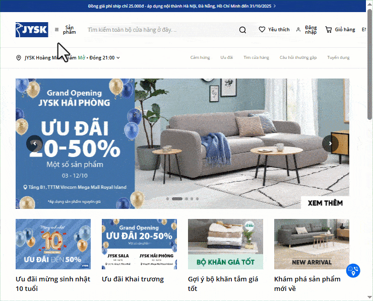 Mở trình duyệt và truy cập https://jysk.vn.