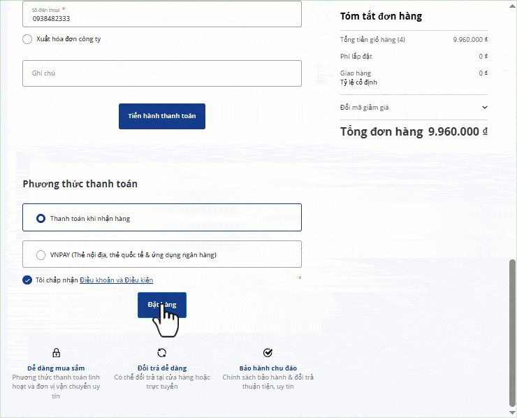 Sau khi kiểm tra, nhấn “Đặt hàng” để hoàn tất.