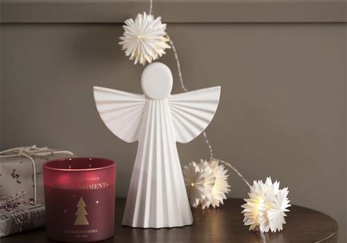 Bạn đang tìm một biểu tượng mùa lễ tinh tế và thuần khiết để tôn lên không gian nội thất? Tượng thiên thần MYS làm bằng gốm màu trắng tinh khiết mang đến vẻ thanh lịch và dịu dàng, phù hợp đặt trên bàn trà, kệ trang trí hoặc cửa sổ để tạo cảm giác bình yên và ấm áp cho không gian Giáng sinh.